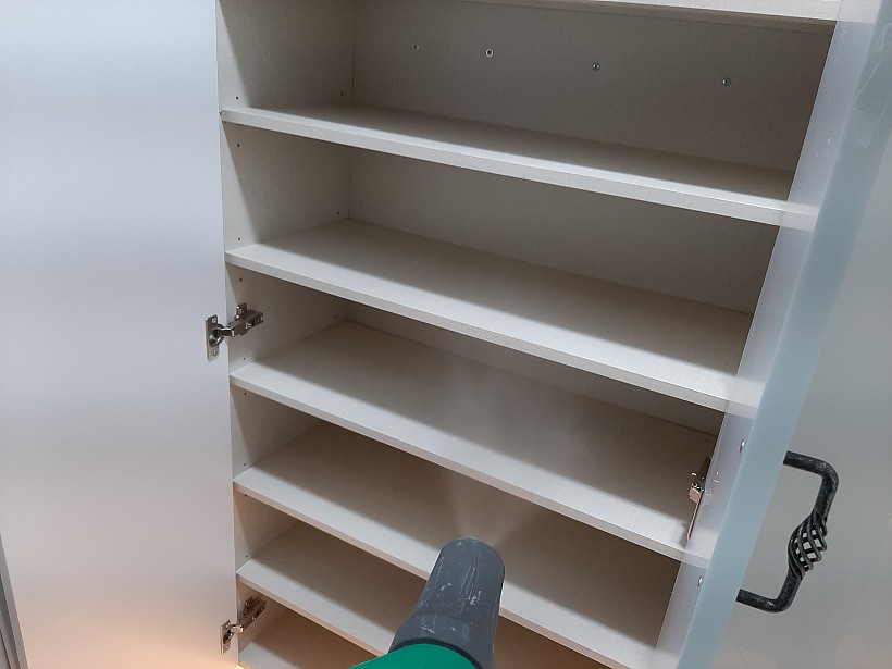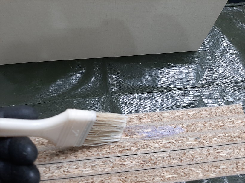 분리한 서랍과 선반의 나무 절단면 부위에서 유해물질이 나오므로 유해물질이 나오지 않도록 코팅을 시켜줍니다.