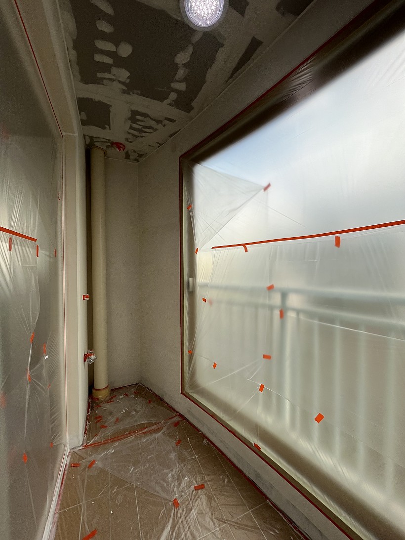 탄성코트 시공 시 가장 주의해야 할 점은 보양 작업입니다.