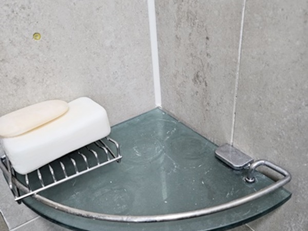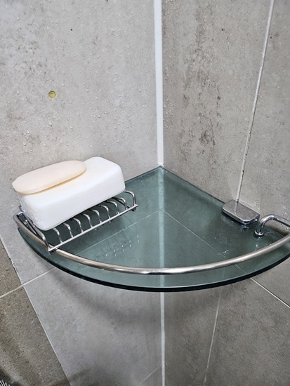 욕실 코너선반에는 보통 샤워용품, 비누 등을 올려두기때문에