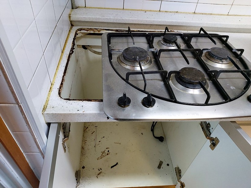 주방 싱크대 물때 얼룩 및 생활오염 제거 , 상하부장 먼지 청소