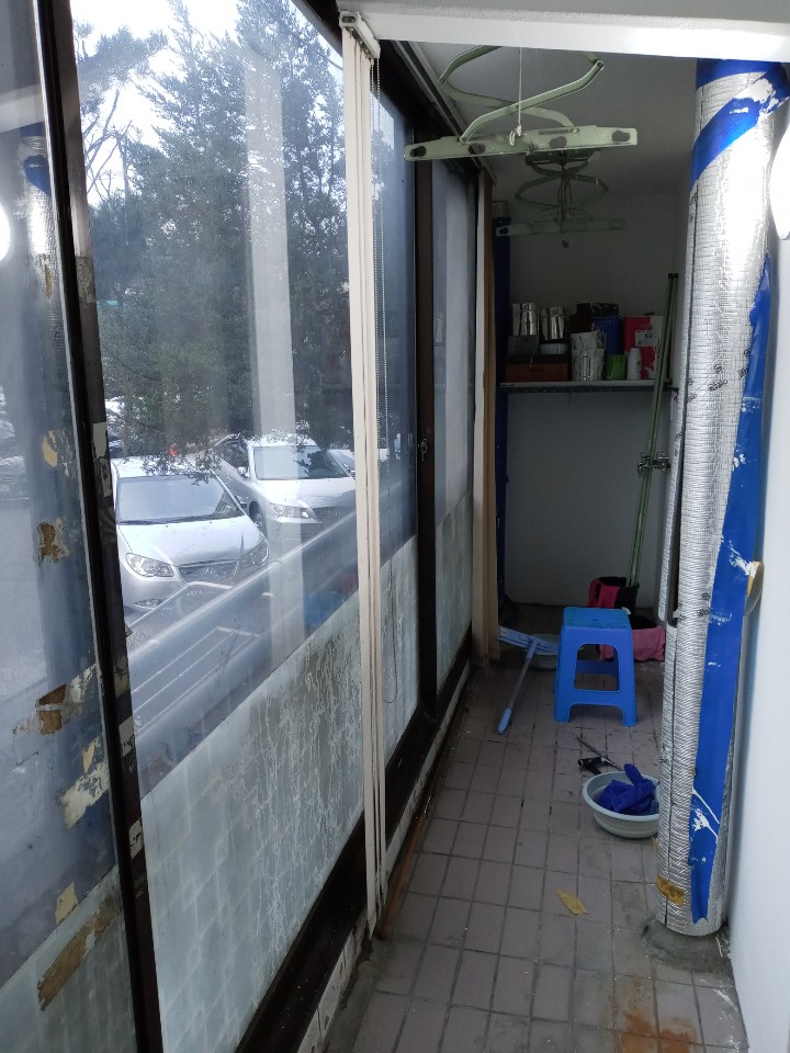 베란다 창문 테이프 자국 제거 및 바닥 오염 청소