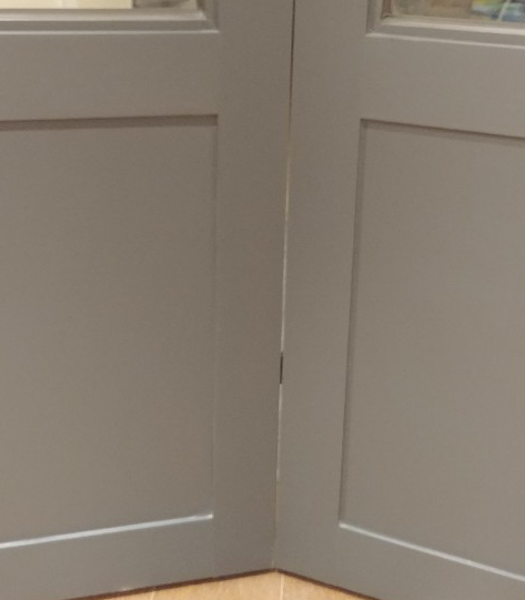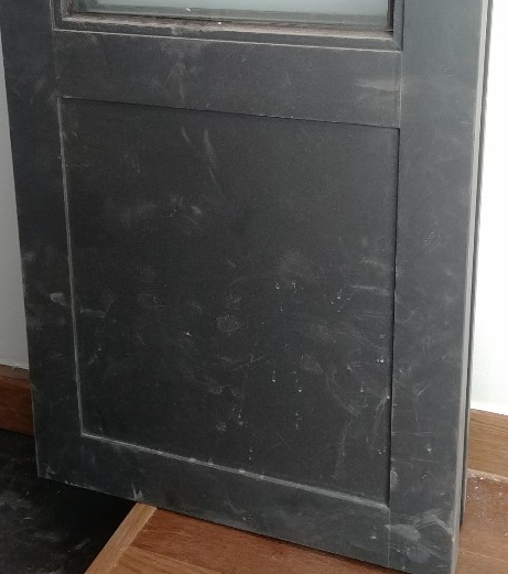 인테리어 작업으로 많은 분진이 발생해 오염된 문의 사진입니다.