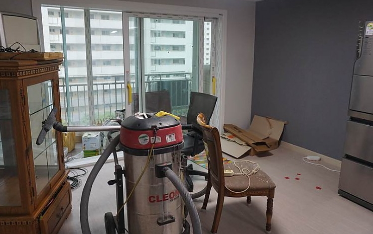 마지막으로 고객님이 요청하신 거실 바닥 청소 작업 전 사진입니다.