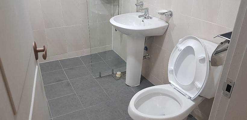욕실 부분 인테리어로 바닥 분진 및 먼지 제거 및 세면대&양변기 먼지 청소