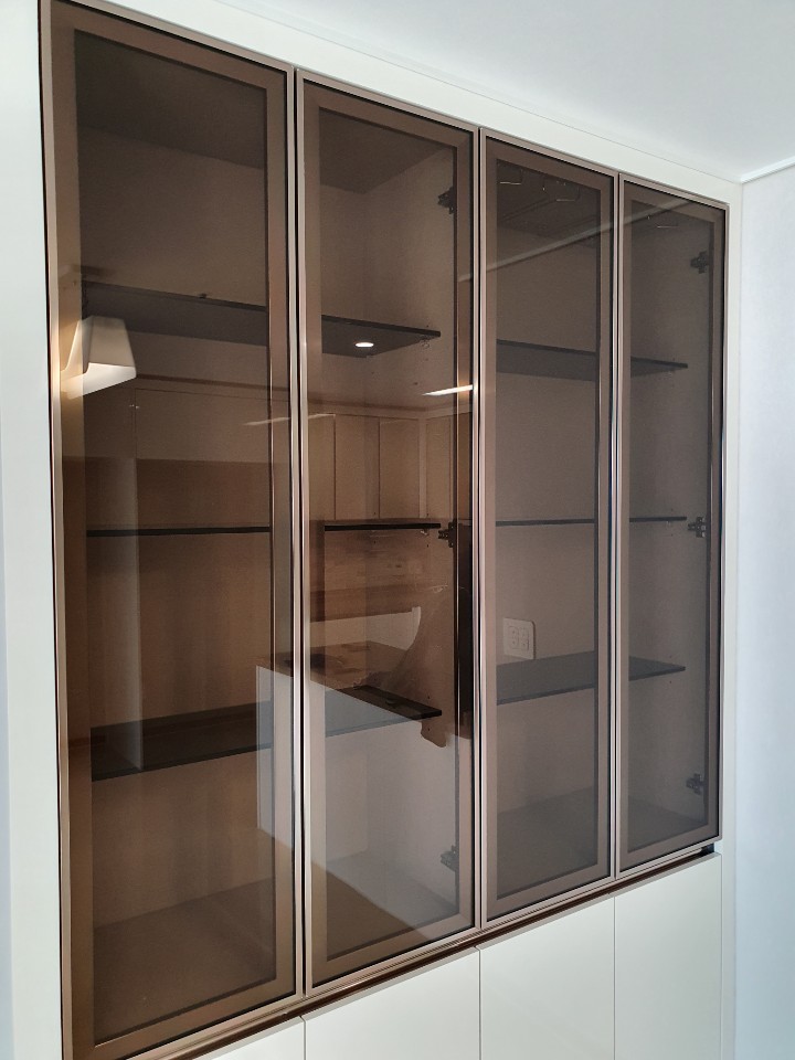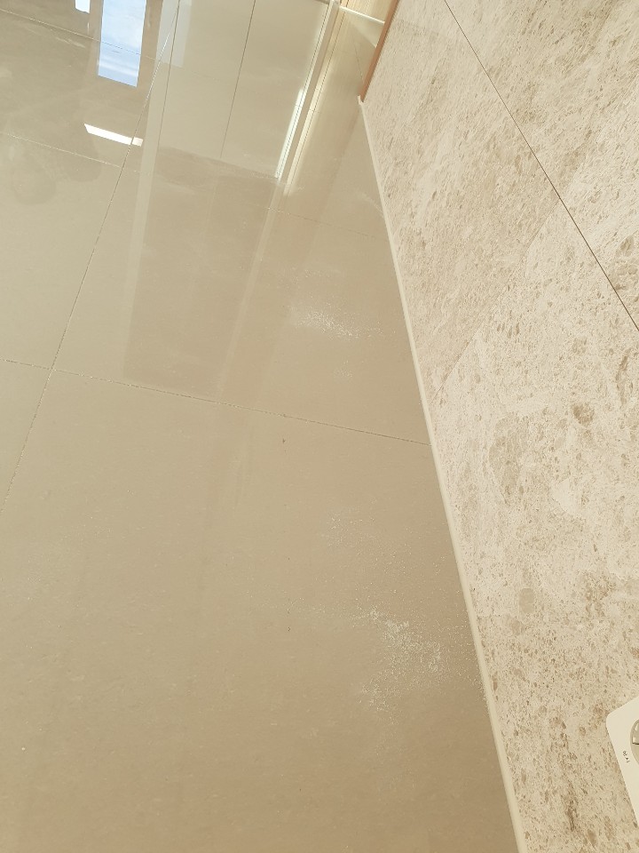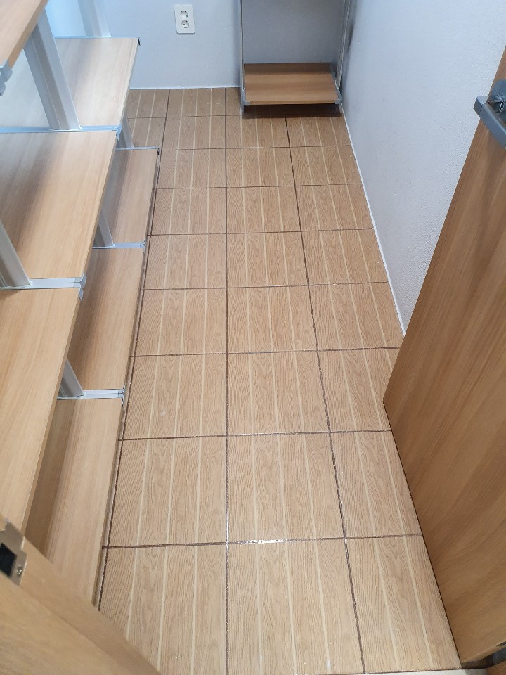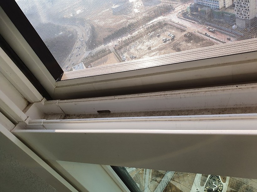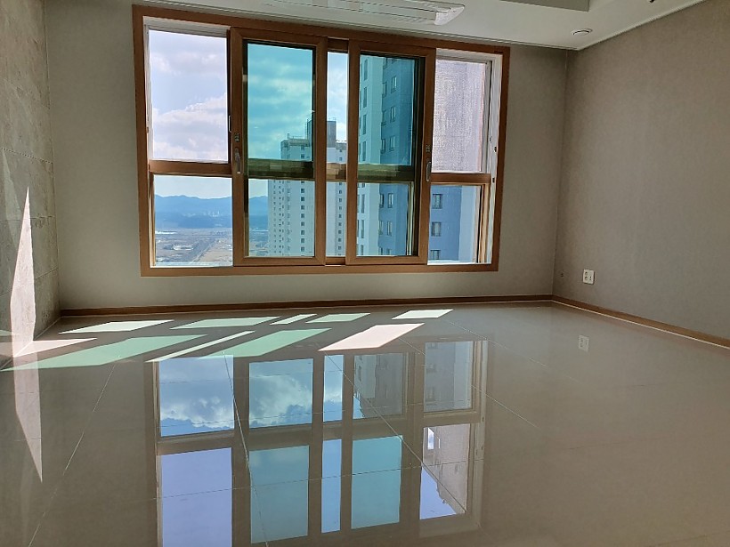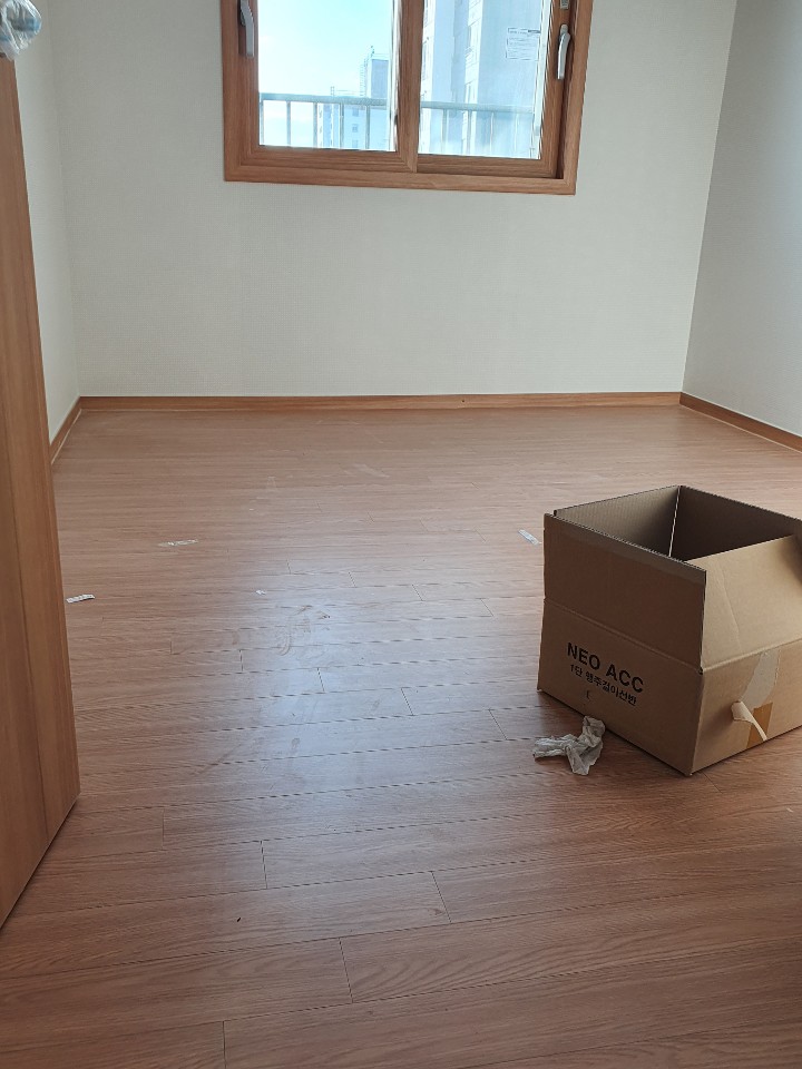 바닥 신발자국, 유리 청소 및 수납공간 톱밥, 보호필름 제거