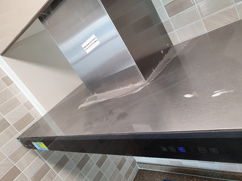 주방 가스레인지 보호커버 제거, 가스렌지 후드 및 수납공간 분진 제거