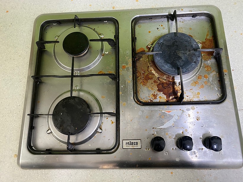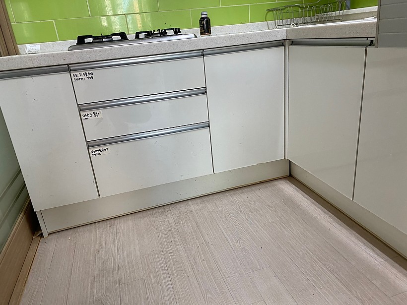 기존 세입자분이 실내에서 흡연을 하여 상부장에 니코틴이 달라붙어 있습니다.