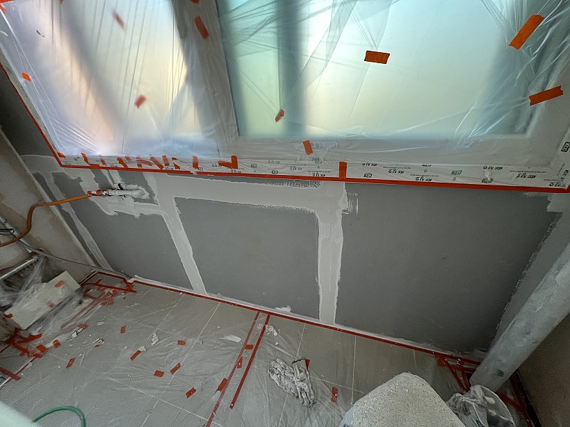 탄성코트 시공 시 가장 주의해야 할 점은 보양 작업입니다.