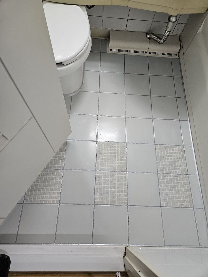 재시공으로 한층 깔끔해져 보이는 화장실 바닥입니다.