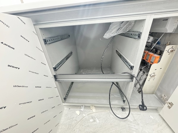 싱크대 상 하부장 내부 또한 분진으로 뒤덮여 지저분해져 있는 모습입니다.