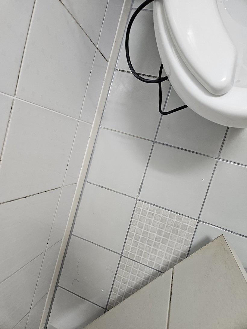 재시공으로 한층 깔끔해져 보이는 화장실 바닥입니다.