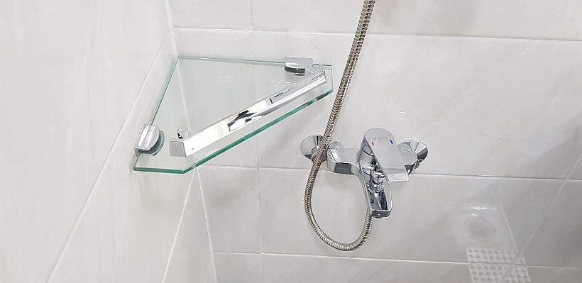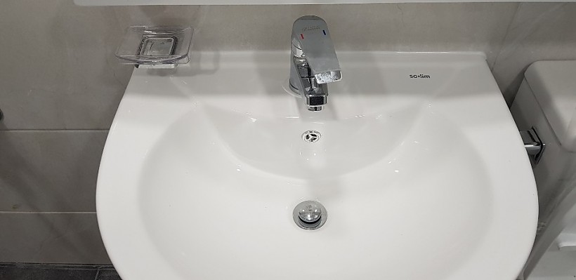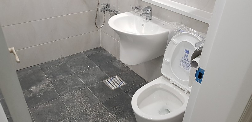 욕실 바닥 분진 및 하수구 청소 , 세면대 및 샤워기 수전 물때 제거 및 샴푸받이 생활오염 제거, 바닥 시멘트 가루 및 발바닥 자국 제거