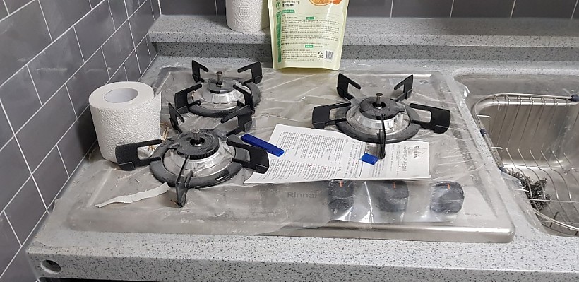 주방 가스렌지 필름지 제거 및 후드필터망 먼지 제거