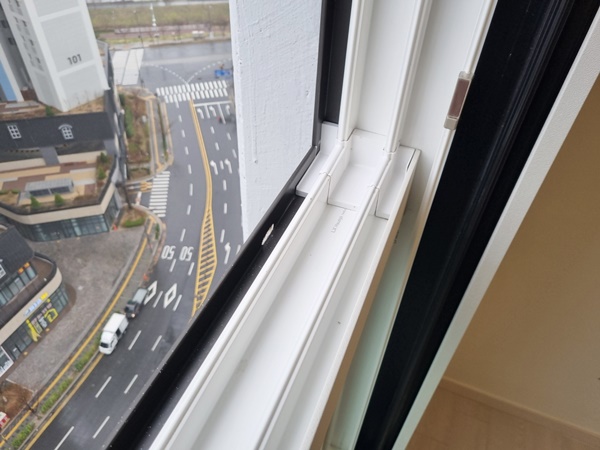 공기 중 떠다니는 먼지나 공사 후 시멘트가루, 분진가루들이 창틀에 많이 묻어있습니다