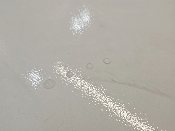 코팅후 물이 흐르지않고 고여있는 모습을 확인해보실 수 있습니다.