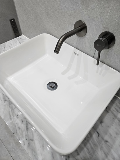 욕실의 새로운 도기와 싱크대 상판 등을
