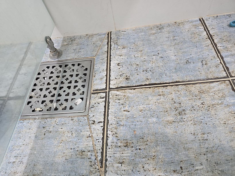 욕실에도 날아다니던 먼지가 바닥에 떨어져 붙어있거나