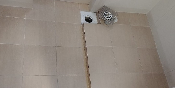 욕실 바닥에 물때와 곰팡이 여부들을 확인하며,