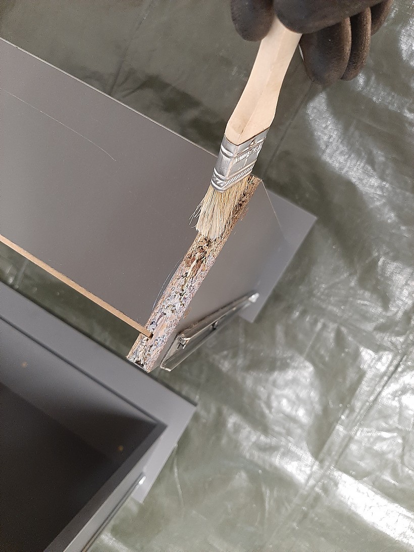 유해물질이 나오는 붙박이 가구 부분에 유해물질이 나오지 않도록 차폐제를 바르는 작업.