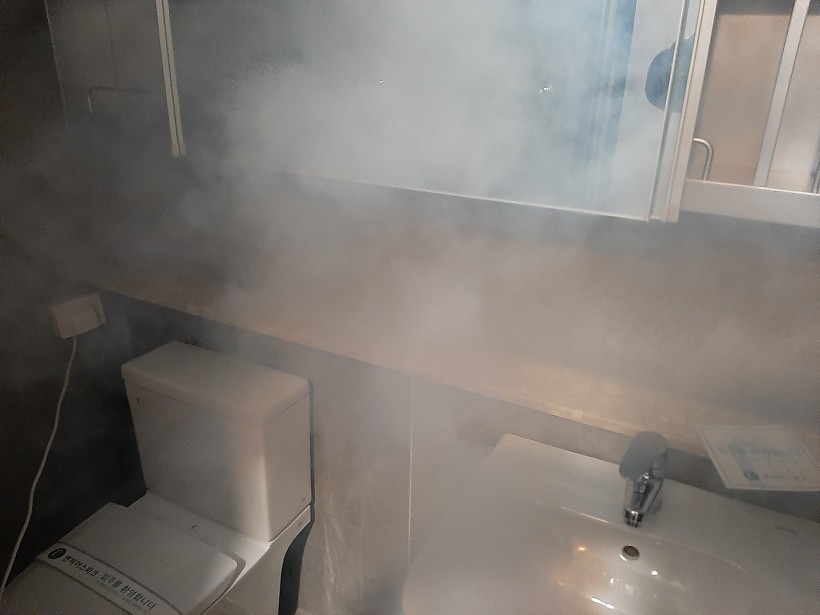 약품작업이 완료가 되면, 실내 공간에 오존 발생기를 타이머를 맞추어 작동.