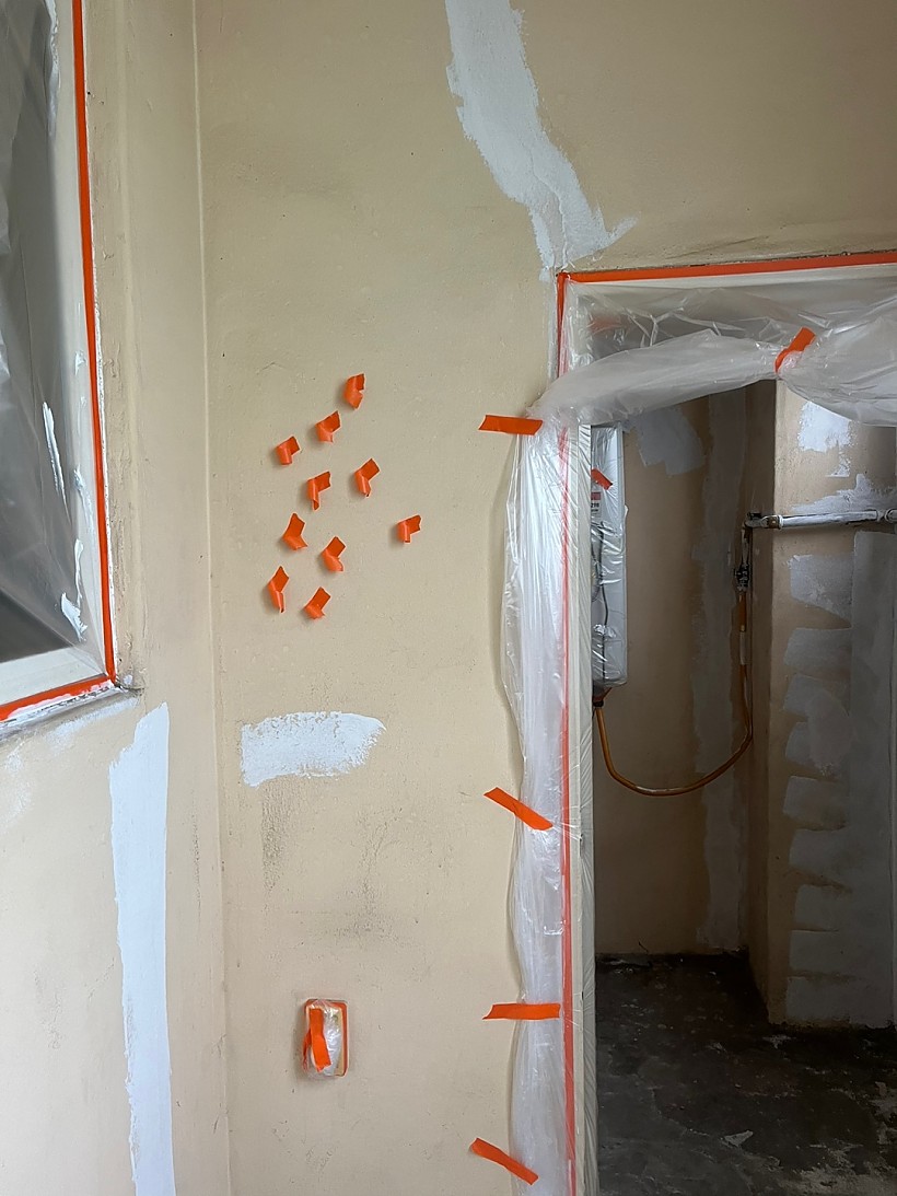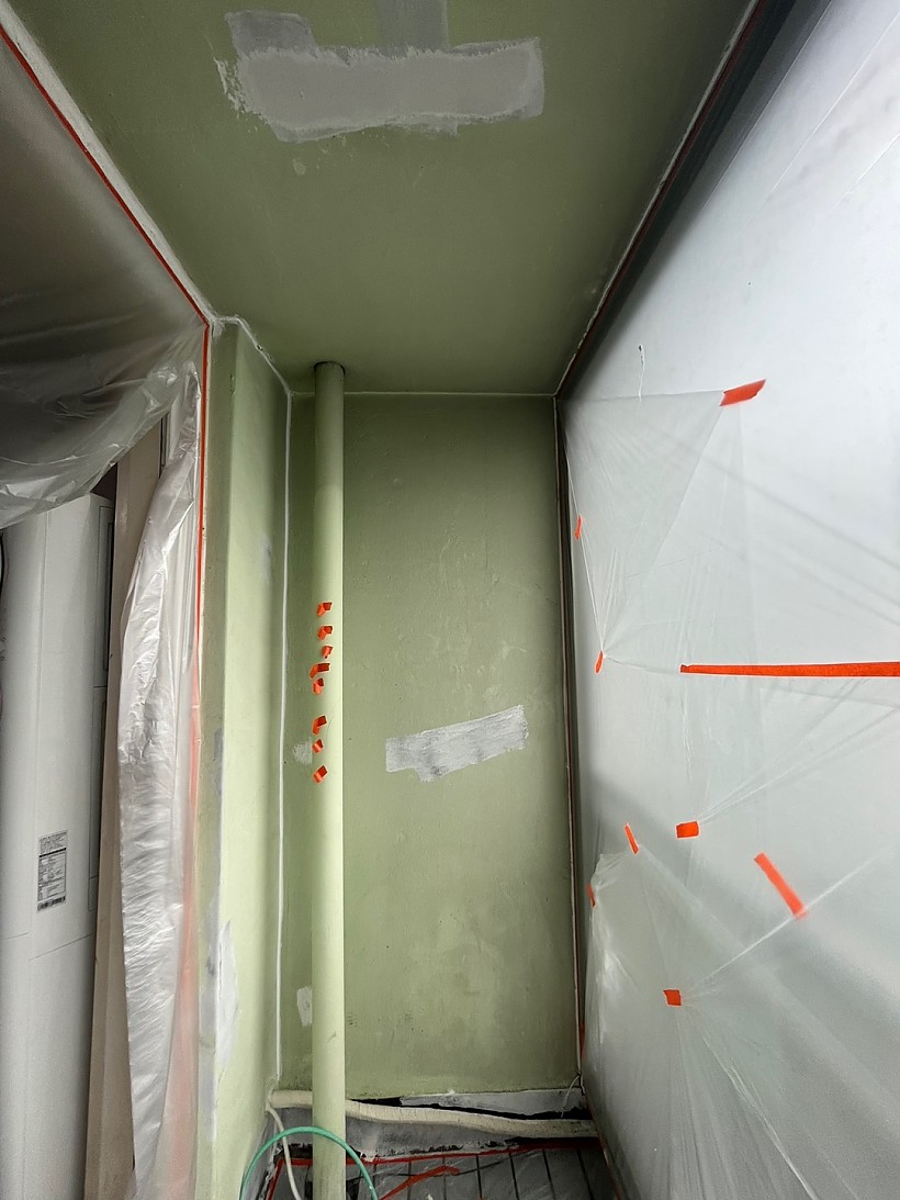 탄성코트 시공 시 가장 주의해야 할 점은 보양 작업입니다.