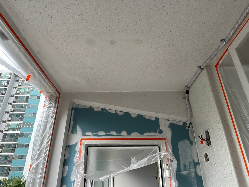 탄성코트 시공 시 가장 주의해야 할 점은 보양 작업입니다.