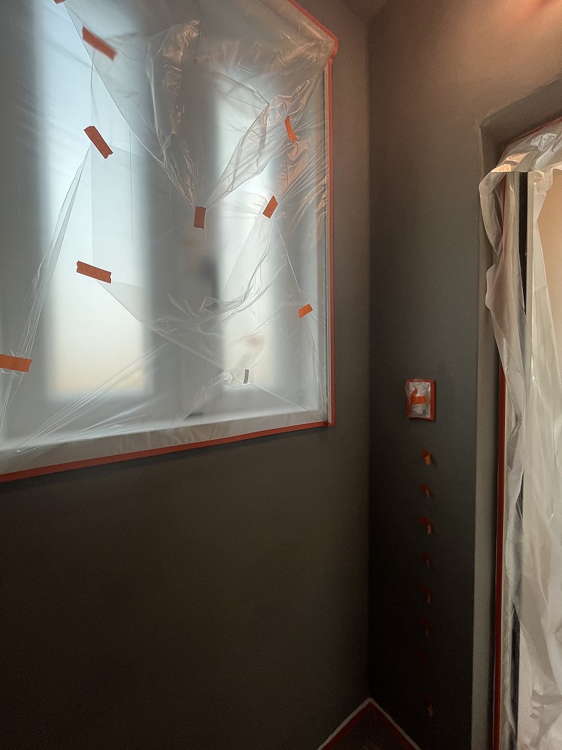 탄성 시공 전문가가 꼼꼼하게 보양 작업을 시작합니다.