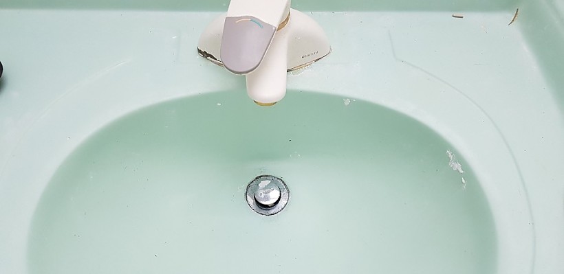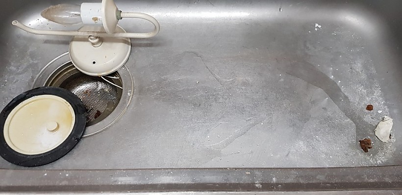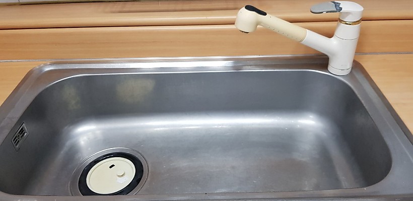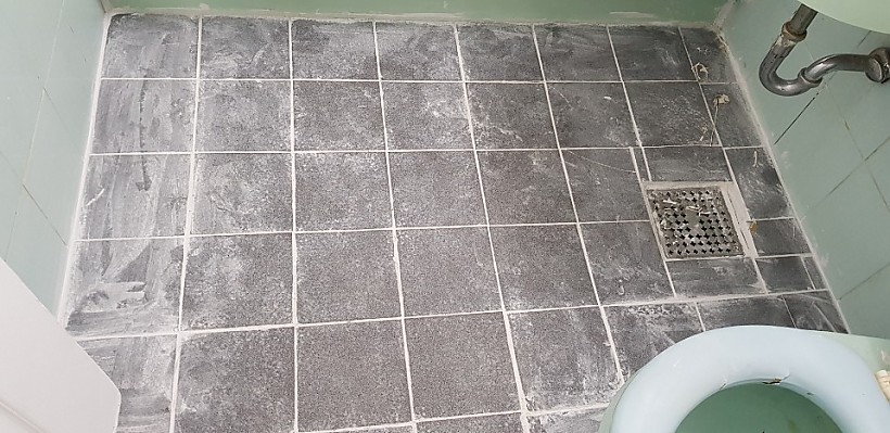세면대 물때 및 먼지 청소 및 바닥 타일 교체로 분진 청소