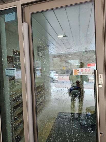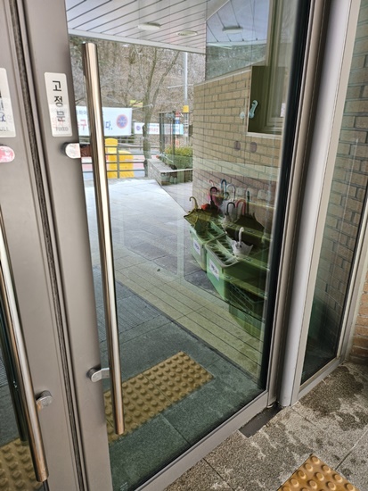 청소 후 현관 유리문이 아주 깔끔해졌습니다.